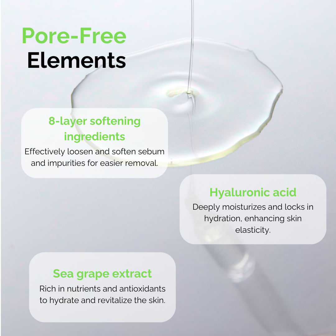 8-Layer Sebum Softening: Sequentially dissolves deep-rooted sebum and blackheads for a pore-clearing effect.